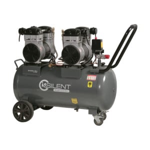 Compresseur mobile insonorisé, à entrainement par courroie, groupe bicylindre en ligne mono-étagé : 22 m³/h, monophasé 230 Volts – 3 CV / 2,2 kW, sur cuve 100 litres, 10 bar maxi. Faible niveau sonore 64 dB (A) grâce à son caisson insonorisé. Équipement complet tableau de commande bouton marche/arrêt, compteur horaire, régulateur…