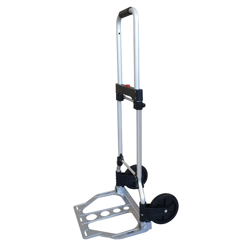 Afin de faciliter le transport de cartons, caisses et toutes autres charges lourdes et encombrantes, nous vous proposons un diable pliant léger et résistant.Équipé d’une bavette rabattable, 2 roues Ø 150 mm et d’une poignée rétractable qui faciliteront le rangement de cet outil dans des endroits restreints.Fabriqué en : aluminiumColoris : gris et noir
