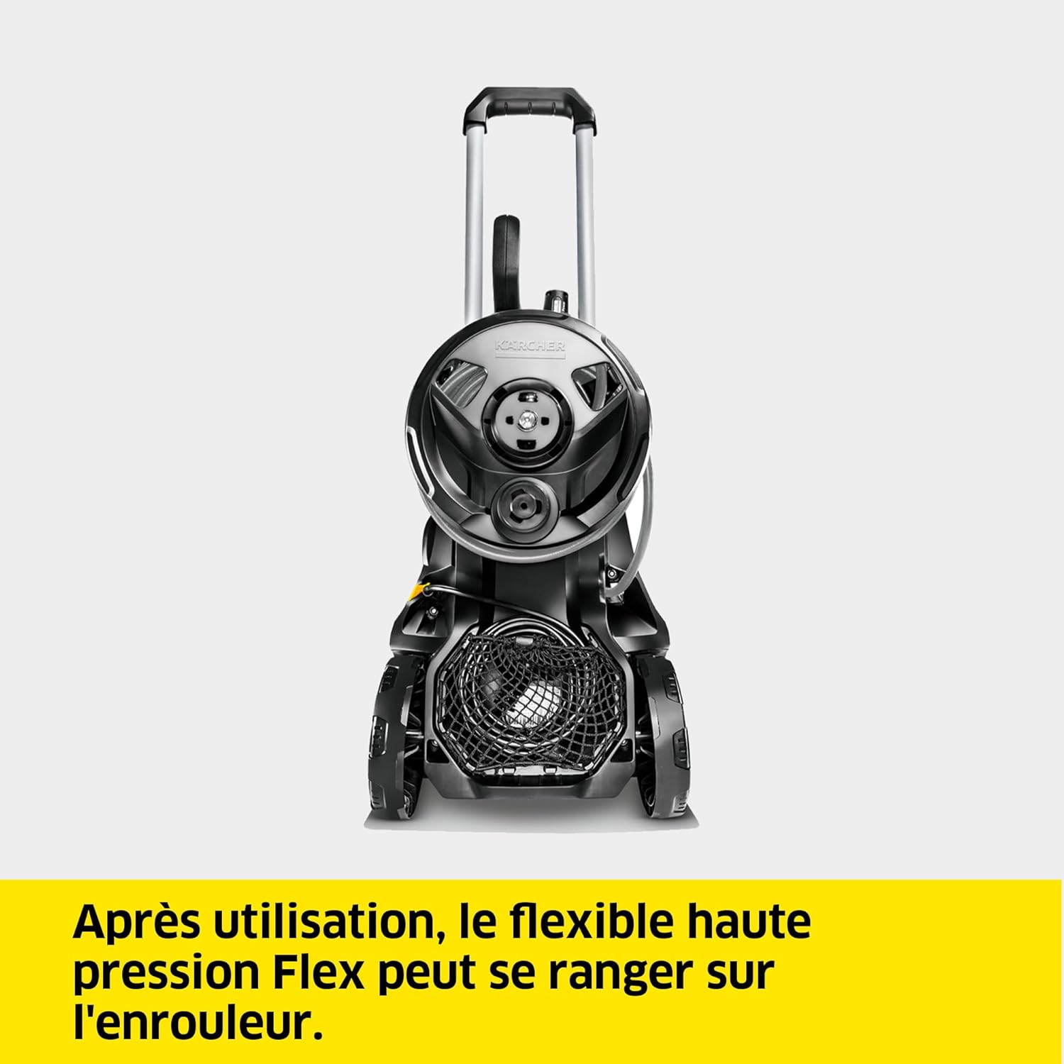 Un enrouleur de tuyau est présent sur l’arrière, ce qui facilite grandement le rangement.